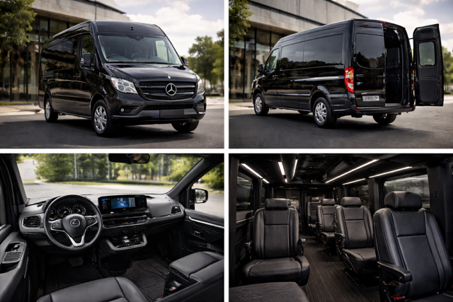 Executive and group transportation with Mercedes-Benz Sprinter vans offering premium comfort and space.